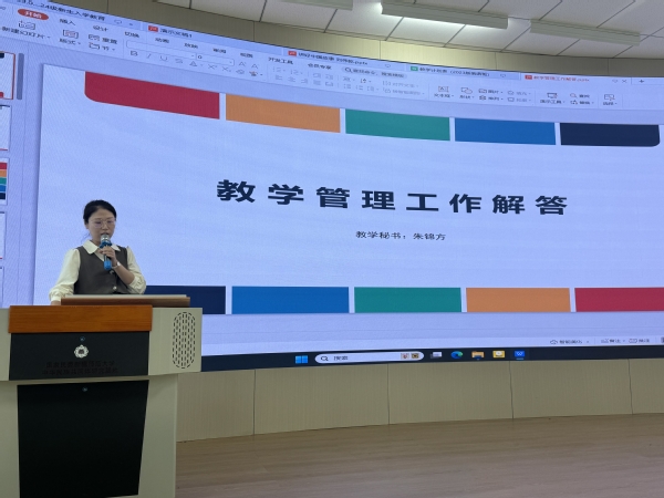 朱锦方老师详细讲解教学具体要求,围绕选修课、学分、预警、考试、重修、毕业标准、辅修专业、比赛项目这九个方面作了具体讲解,帮助同学们了解教学内容及进度,要求同学们及时做好自己的学习计划安排,合理规划大学学习生活。