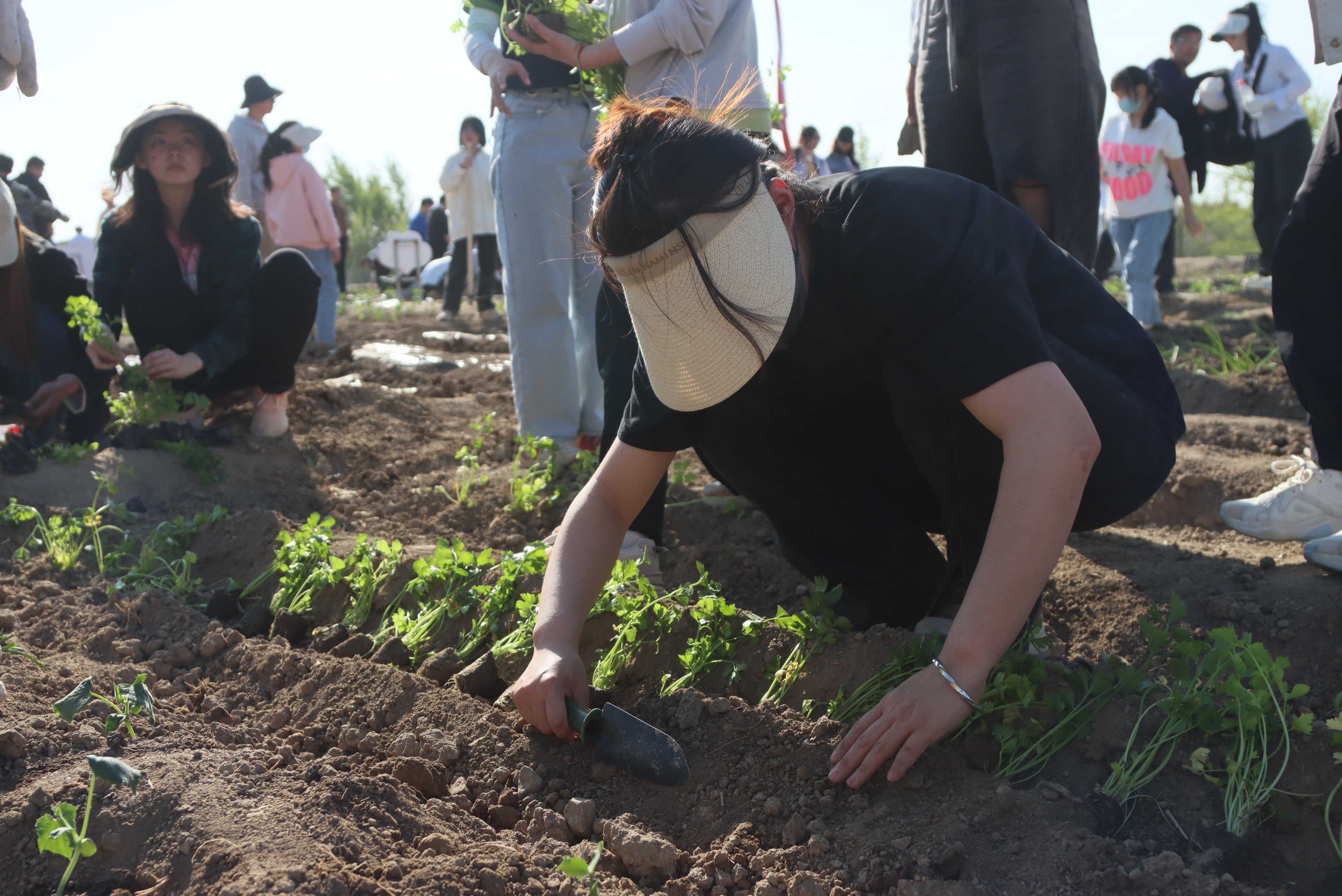 划分的农场地里随处可见老师和同学们忙碌的身影,大家分工合理,配合默契。有的翻地松土,有的除草清理,有的种下春苗,有的浇灌甘甜。炎炎烈日,抵挡不住同学们的劳动热情,大家有说有笑,沉浸式体验种菜。在同学们的辛勤耕作下,顺利完成辣椒、大葱、茄子等近百株菜苗的种植,为桃山的农田种下了希望的苗种。