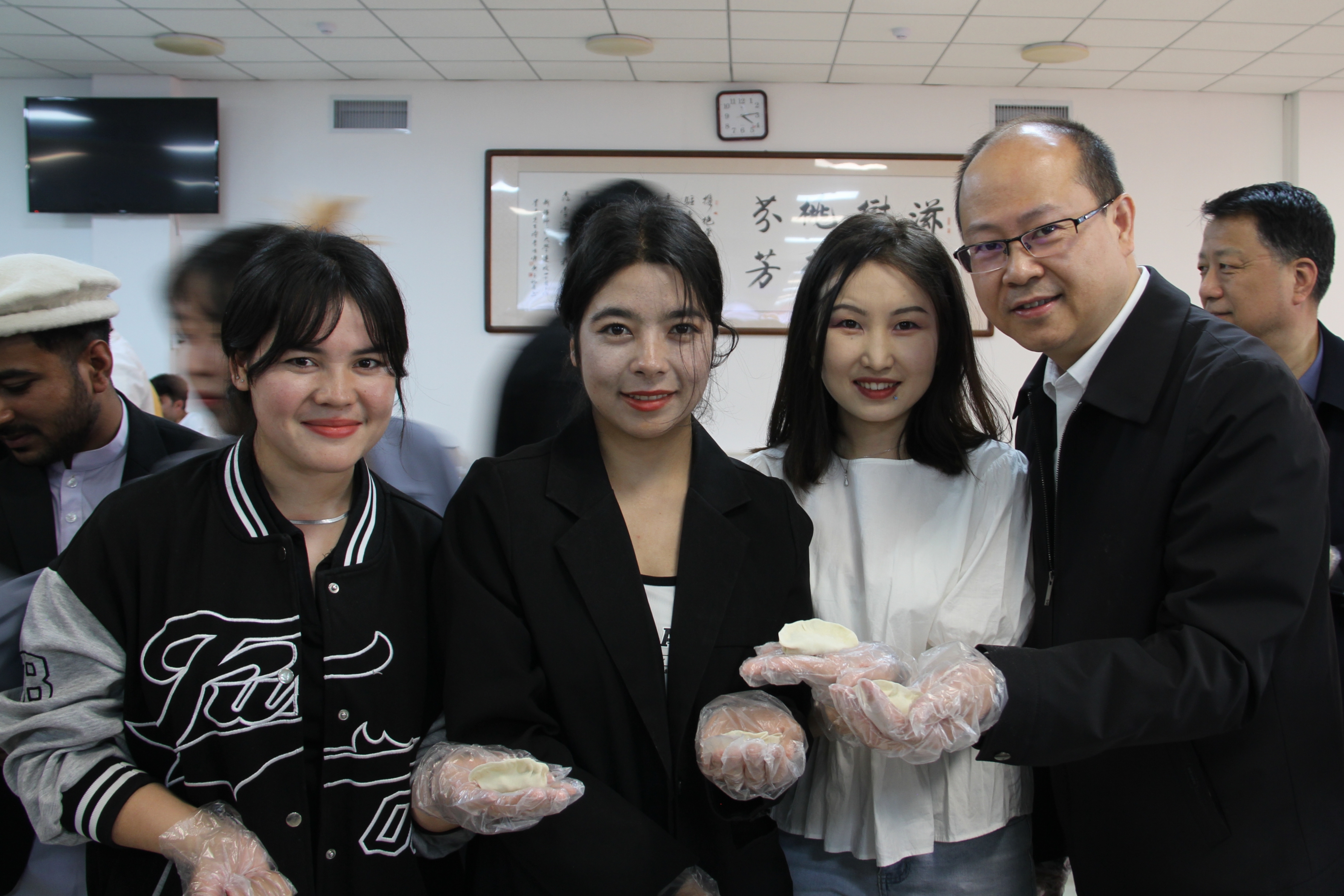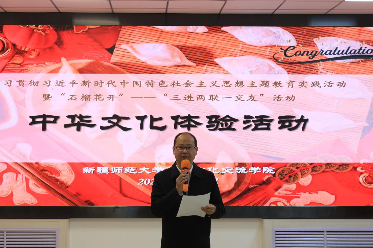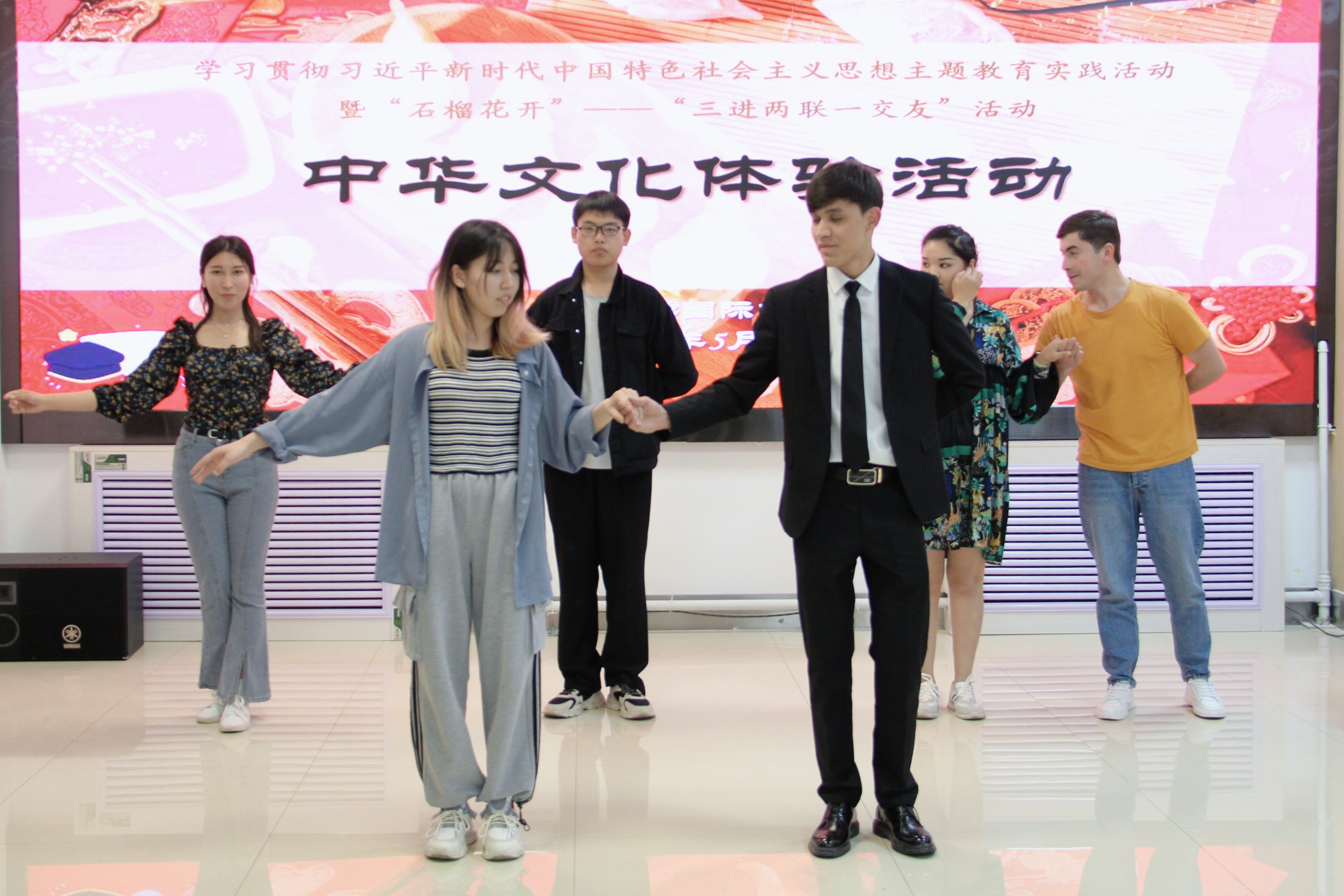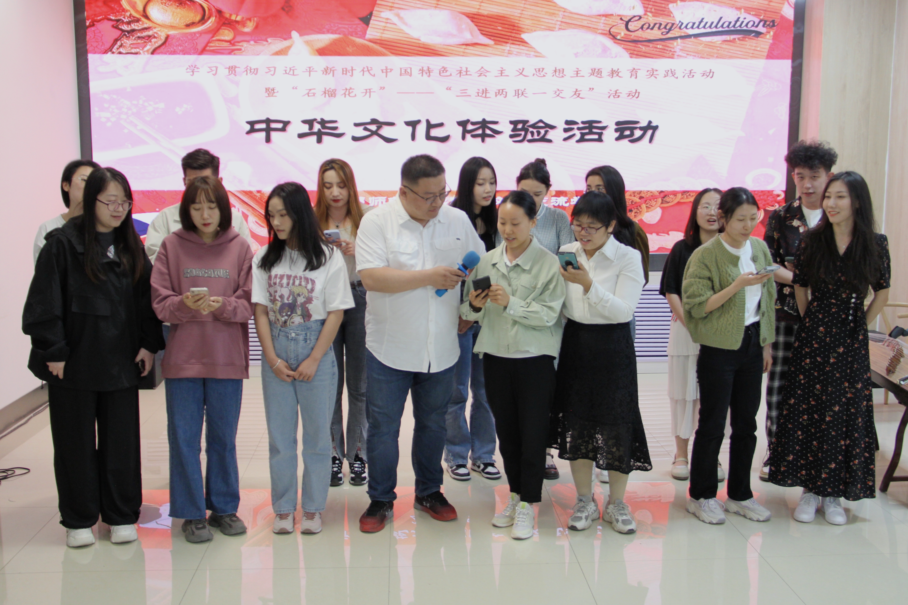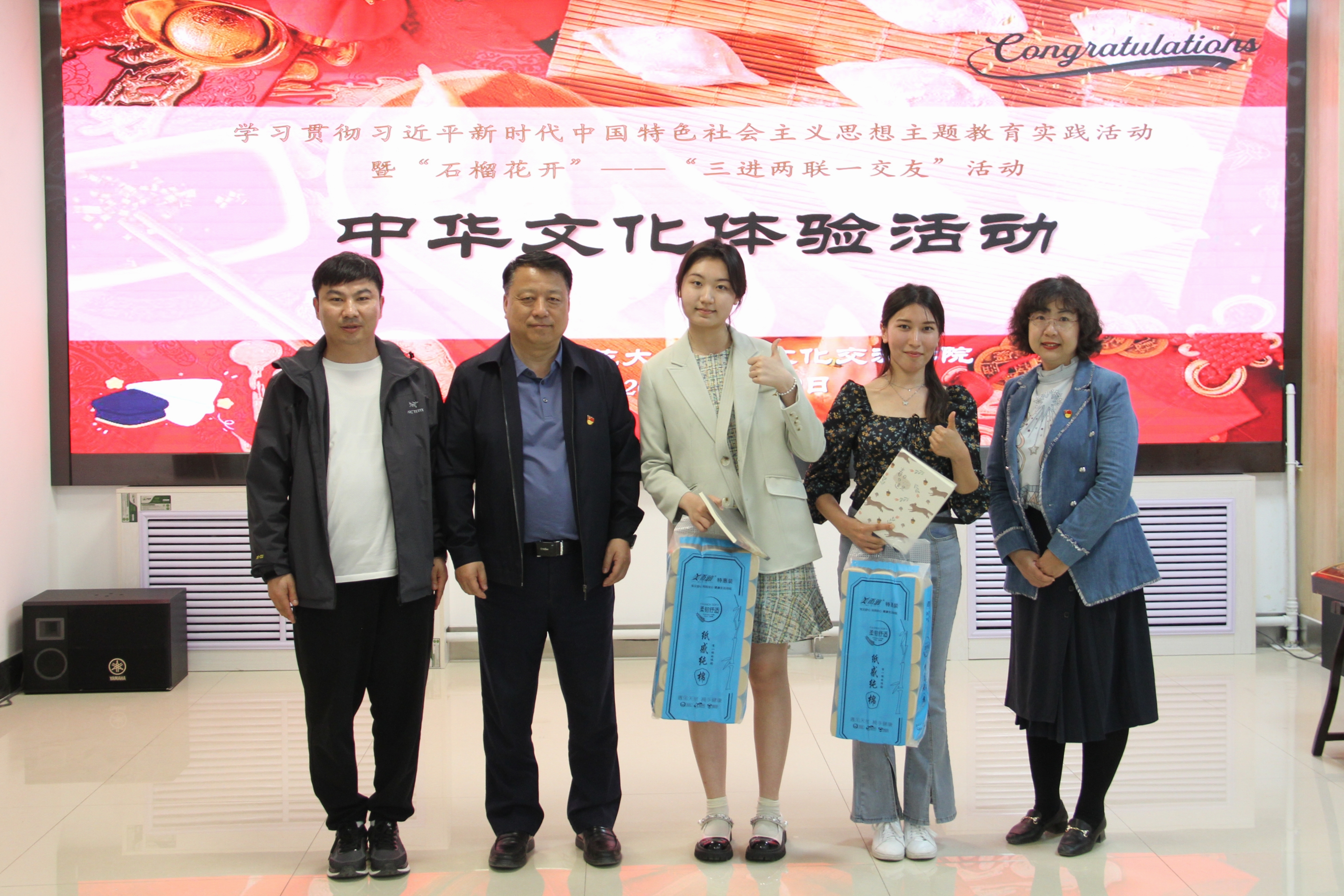 在行政楼一楼教职工餐厅开展了“石榴花开”“三进两联一交友”毕业季中华文化体验活动。学校党委常委、统战部部长关明出席活动,学院党委书记李嘉东、党委副书记、纪委书记王辰、副院长陈爽、学院“三进两联一交友”联系教师代表、结对学生代表、毕业生代表和学院留学生代表参加了本次活动。