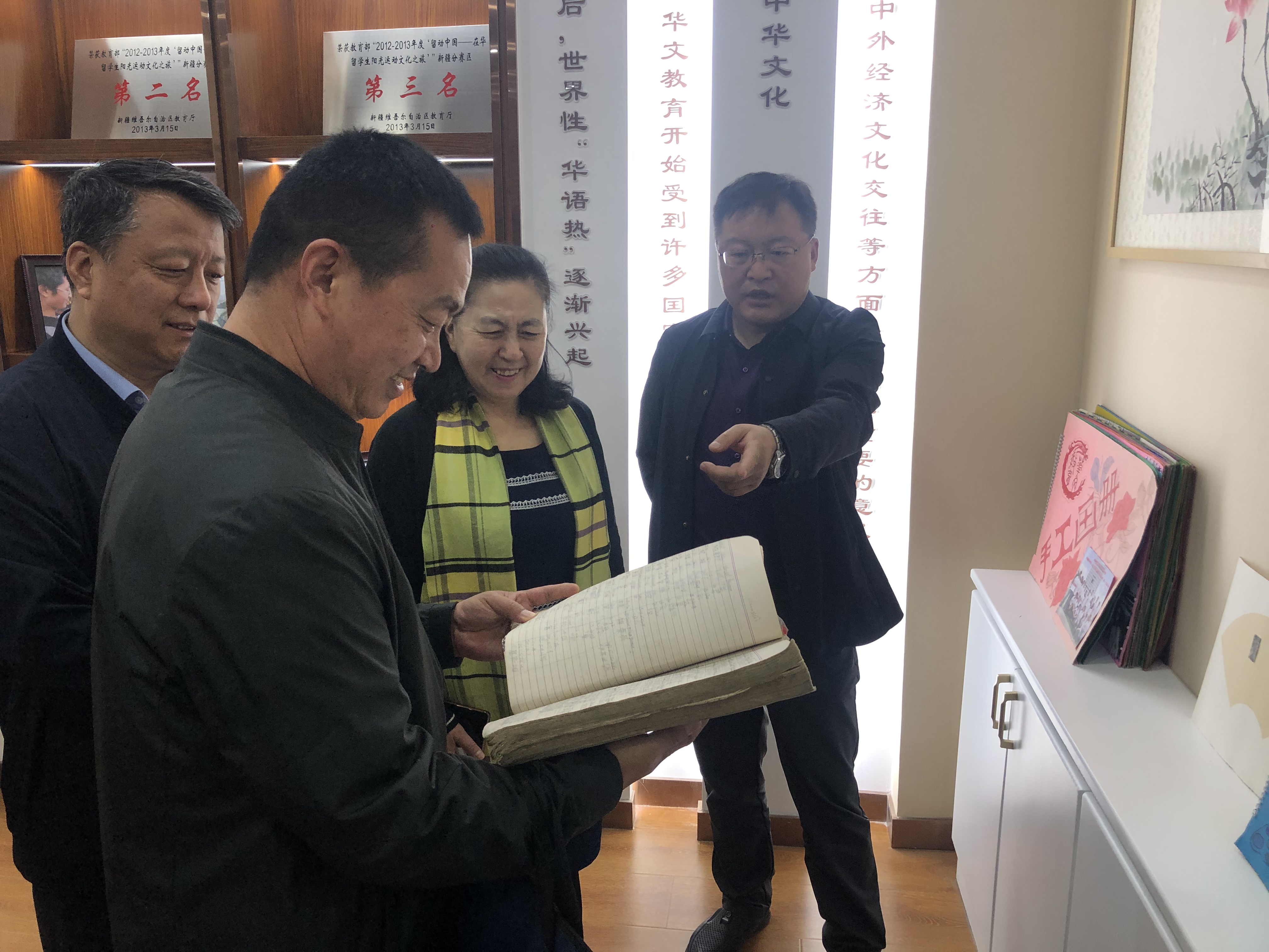 学院领导班子陪同侨联一行人参观了学院华文教育陈列室,伊莉曼院长介绍了学院从2011年华文教育基地揭牌以来,华文教育的发展历程和所取得的成就。