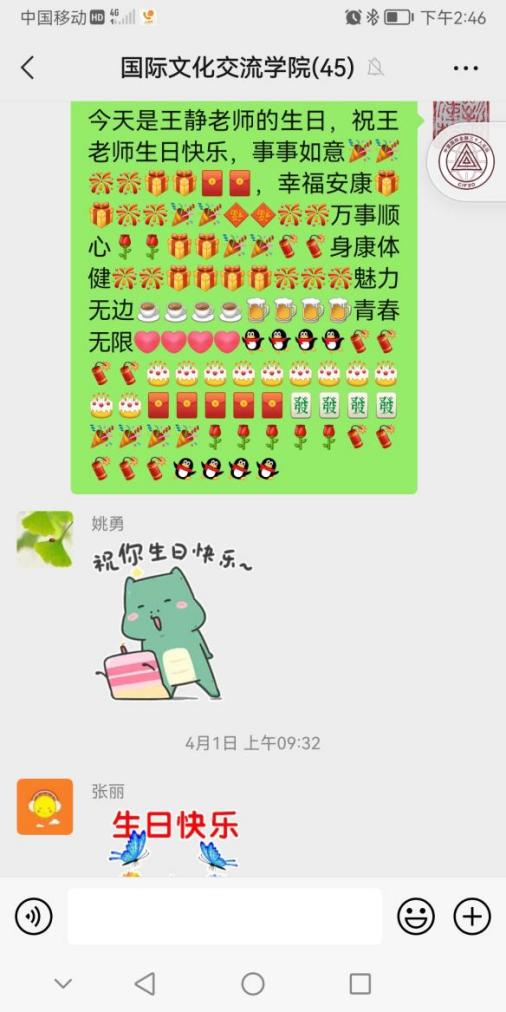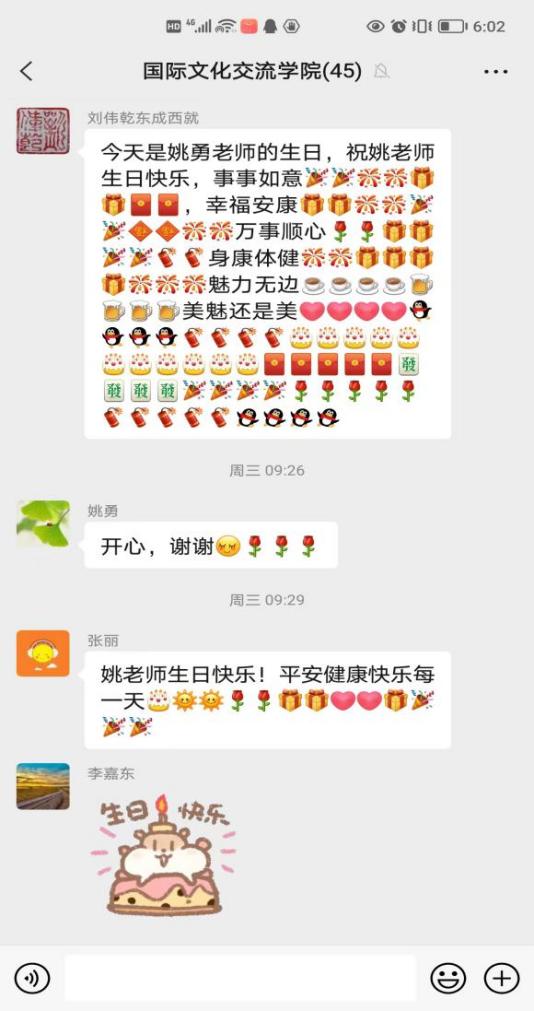工会为三位教师送上了生日祝福贺卡以及香甜的生日蛋糕。同事们也纷纷在学院群里为过生日的老师献上温馨的祝福。