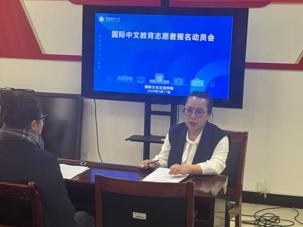 再次召开国际中文教师志愿者报考动员推进会,分别动员学院研究生和大四学生进行报考。出席会议的有学院党委负责人刘建伟、党委副书记、纪委书记王辰、副院长李敬欢,全体研二研究生和大四本科毕业生参加此次会议。