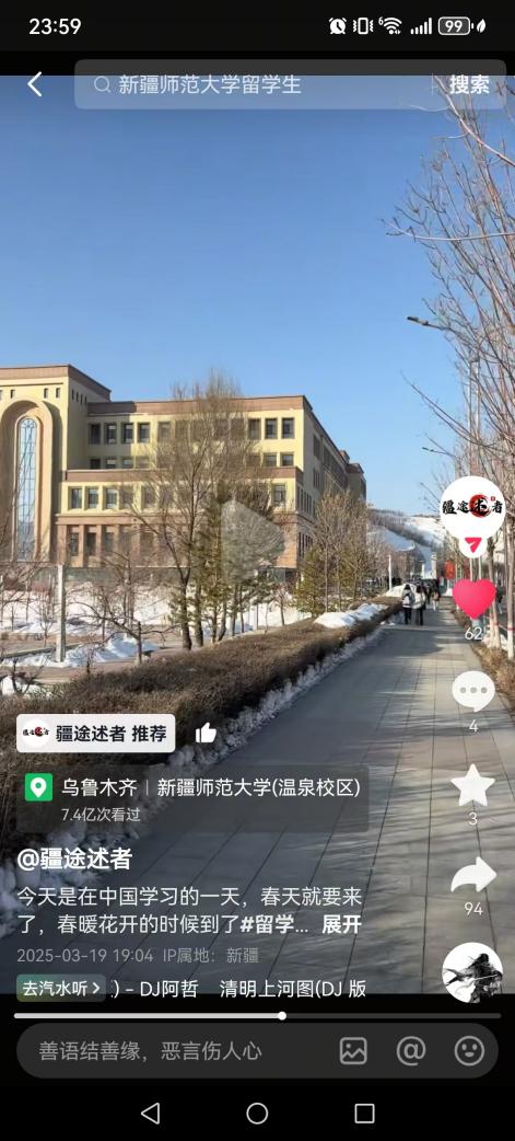 据悉,“疆途述者”团队主要是利用创新的“网红经济”模式,积极打造培育留学生“洋网红”,用留学生的视角讲述新疆文化和风土人情,特别是讲出各族人民交流交融、共生共荣的具体故事和生动案例,增强国际社会对新疆的了解与认知。截止目前,该项目于抖音短视频平台发布共计12个视频,27714播放量,账号拥有实时1335位粉丝量,累计18.7万+点赞量,累计711.4万+播放量,且项目所使用的社交平台账号流量稳定。