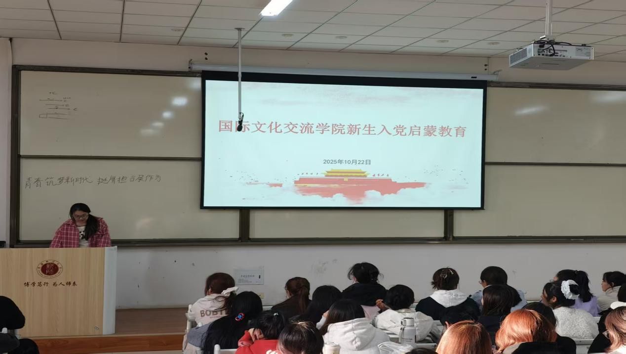 通过多种形式开展2025级新生入党启蒙教育,助力新生锚定青春航向、筑牢信仰根基。10月22日下午,该系列活动在齐学楼106教室举行,由研究生党员薛雅婷主持,辅导员余金桀老师、研究生党员闫红宇主讲,全体2025级新生参与。