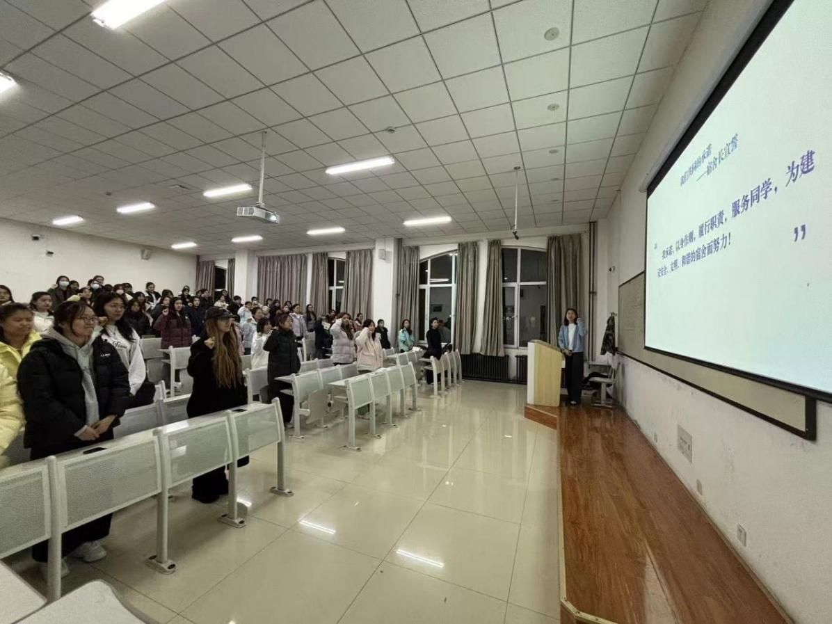 于齐学楼126教室召开宿舍长赋能交流会。会议由学院辅导员何娜老师主持,社区辅导员刘文忻、崔昕、生欣老师担任主讲,全体宿舍长参加。