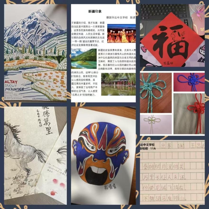 在为期10天的活动中,课程设计将“理论授课+实践体验+地域特色”有机结合,内容丰富多元。营员们不仅系统学习了汉字智慧、中华书法、古典诗词吟诵等传统文化精髓,还深入体验了新疆天马文化、云端漫游新疆、民族舞蹈与特色饮食等独具魅力的地域文化课程。此外,中国结编制、中华武术、京剧脸谱绘制等互动实践环节,更让营员在动手操作中沉浸式感受中华文化的博大精深与新疆多元文化的独特韵味。