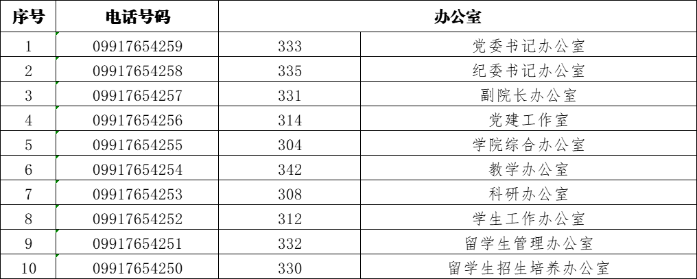 根据工作安排,我院办公电话调整如下:
