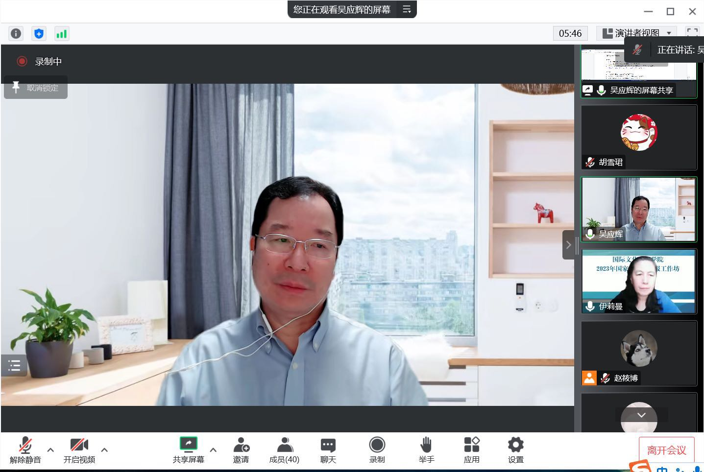 吴应辉教授首先对老师们展示的选题提出分析意见和建议,他结合自己国家社科基金的申报评选经验提出,一要结合自己的研究基础,选择有明确问题导向的题目;二要选择好题目,既要能服务国家战略,又要符合学院学科发展定位;三要在充分了解该领域前沿动态的基础上,发挥区域特色,对所选题目反复推敲、浓缩和提炼。最后他就老师们提出的各种问题进行了耐心细致的解答,线上讨论气氛热烈。