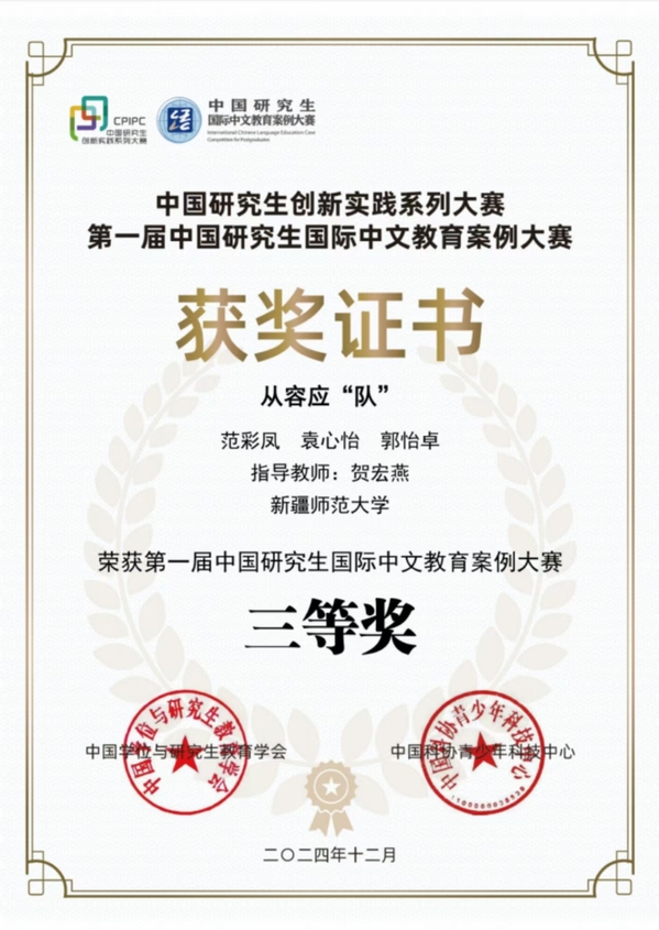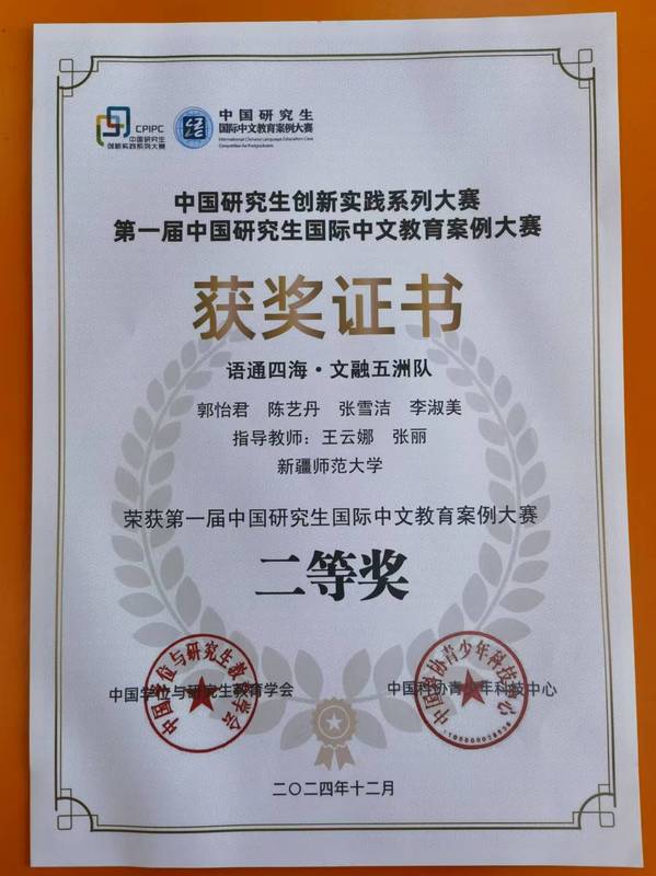 自比赛开始以来,我校亚洲色情 王云娜老师、张丽老师指导的硕士研究生郭怡君、陈艺丹、张雪洁、李淑美团队以及贺宏燕老师指导的硕士研究生范彩凤、袁心怡、郭怡卓团队,深入钻研国际中文教育的前沿理论与实际问题,精心挑选案例主题,认真打磨案例内容,反复进行模拟训练,经过不懈努力,突破选拔赛进入国赛梯队,在总决赛中表现突出经过激烈竞争最终取得全国二等奖一项三等奖一项的好成绩这充分体现了学校在国际中文教育人才培养方面的较好成效彰显了我国际中文教育的专业实力。