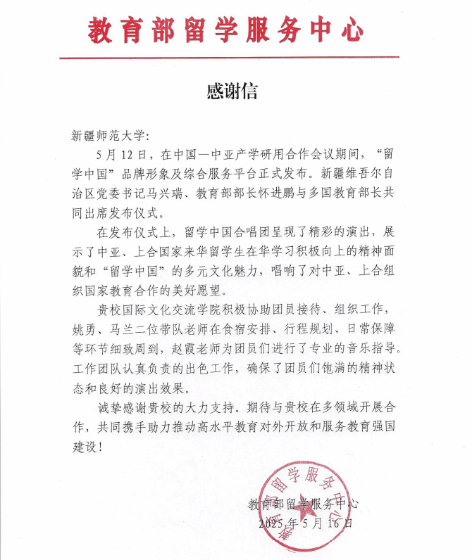 积极做好接待和组织工作,相关老师在食宿安排、行程规划、日常保障、音乐指导等环节做到专业细致周到,保障了活动顺利进行。我校也收到了教育部留学服务中心发来的感谢信,活动演出得到师生的一致好评。