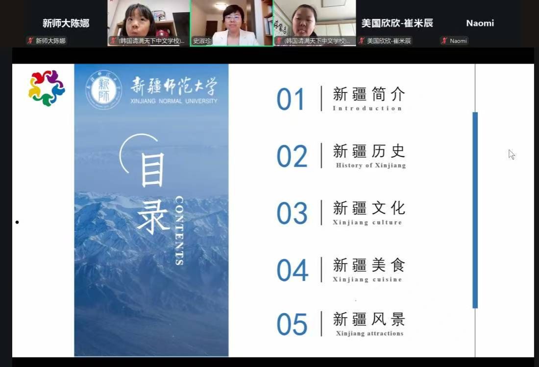 史淑珍老师带来精彩的第一堂课——《乌鲁木齐概况》,分别从新疆简介、新疆历史、新疆文化、新疆美食、新疆风景5个方面对新疆进行了详细介绍,生动的讲解让同学们仿佛身临其境,对新疆这片神奇的土地有了初步的认识和向往。