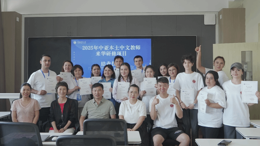2025年中亚本土中文教师来华研修项目结业仪式合影,右四为上官茉莉