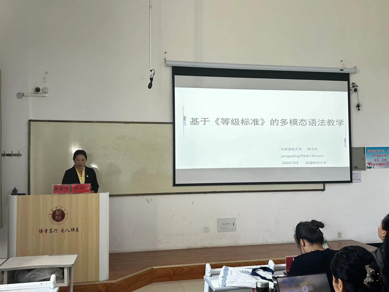 2024年109在温泉校区3号教学楼A127教室,中国语言文学学院和中亚汉语国际教育研究中心联合举办“知蹊学术”(第十一讲)专题讲座专门邀请北京语言大学杨玉玲教授做了题为《基于〈等级标准〉的多模态语法教学》的讲座。学院师生听取了讲座。