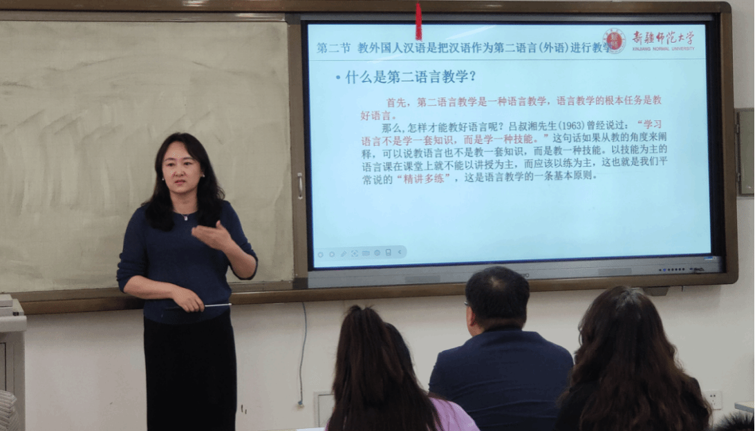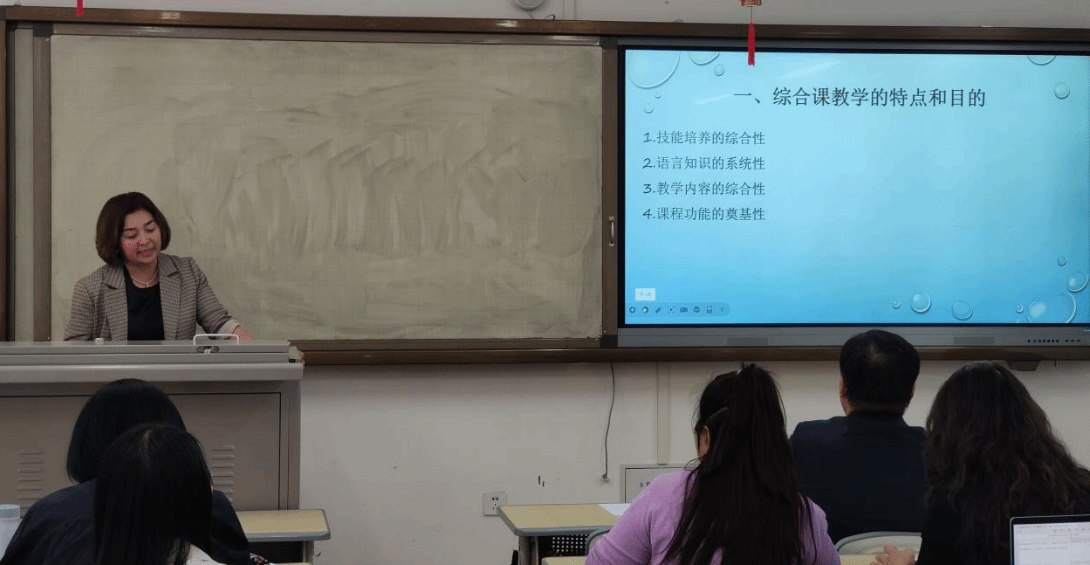 留学生系举办汉语综合课教研活动,学院副院长邓新、刘伟乾及全体授课教师参与。